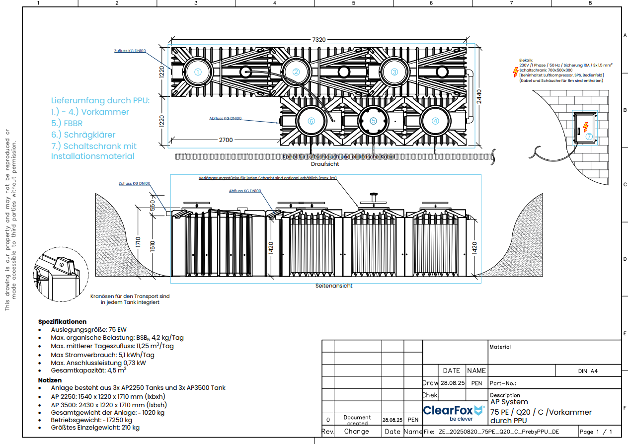 Das Produkt ClearFox® AP FBBR Komplettsystem (C - 100 EW) ist dafür ausgelegt Kohlenstoff (C = CSB & BSB5) abzubauen. Hierbei ist die Vorklärung in der Lieferung unkludiert.