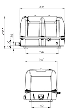 - Abmessungen: L 335 x B 240 x H 238,5 mm